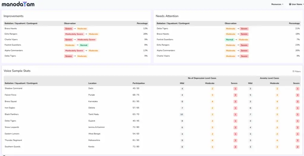 Manodayam’s advanced analytics engine processes voice biomarkers across longitudinal profiles to deliver actionable intelligence that transforms mental health from reactive crisis management to predictive population wellness